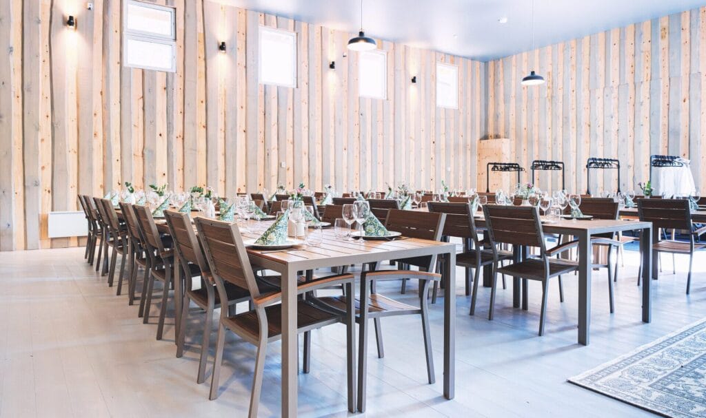 Captain’s Hall is airy, atmospheric and inspired by the archipelago. The interior features beautiful light tones that blend seamlessly with the natural surroundings of Heisala Island, creating a refined yet relaxed ambience for memorable occasions.