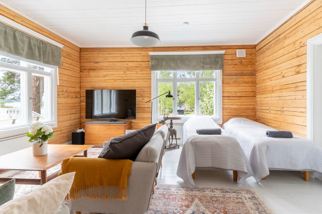 Both the main villa and the Rengintalo are furnished with unique details inspired by Captain Andersson’s sea voyages around the world. The main villa features stylish lounge areas and an atmospheric dining room. The kitchen is fully equipped and suitable both for self-catering and for use by professional catering services.