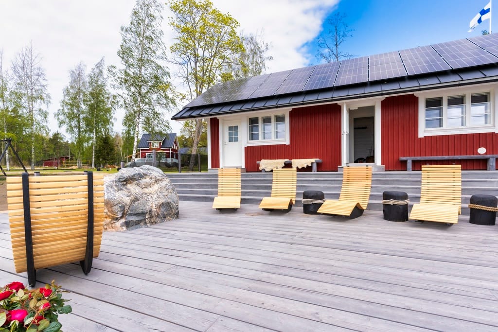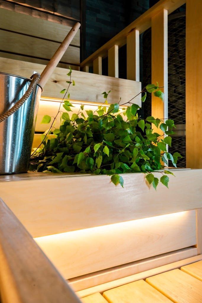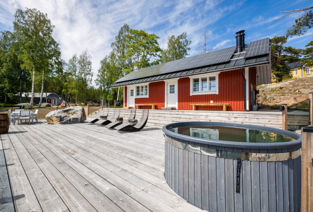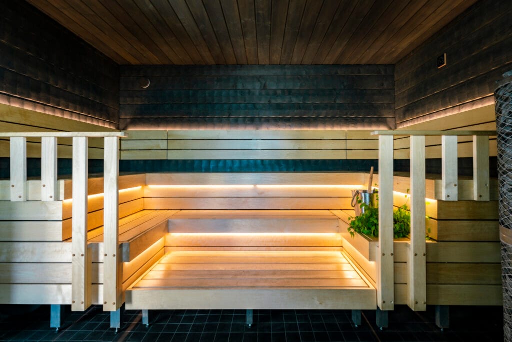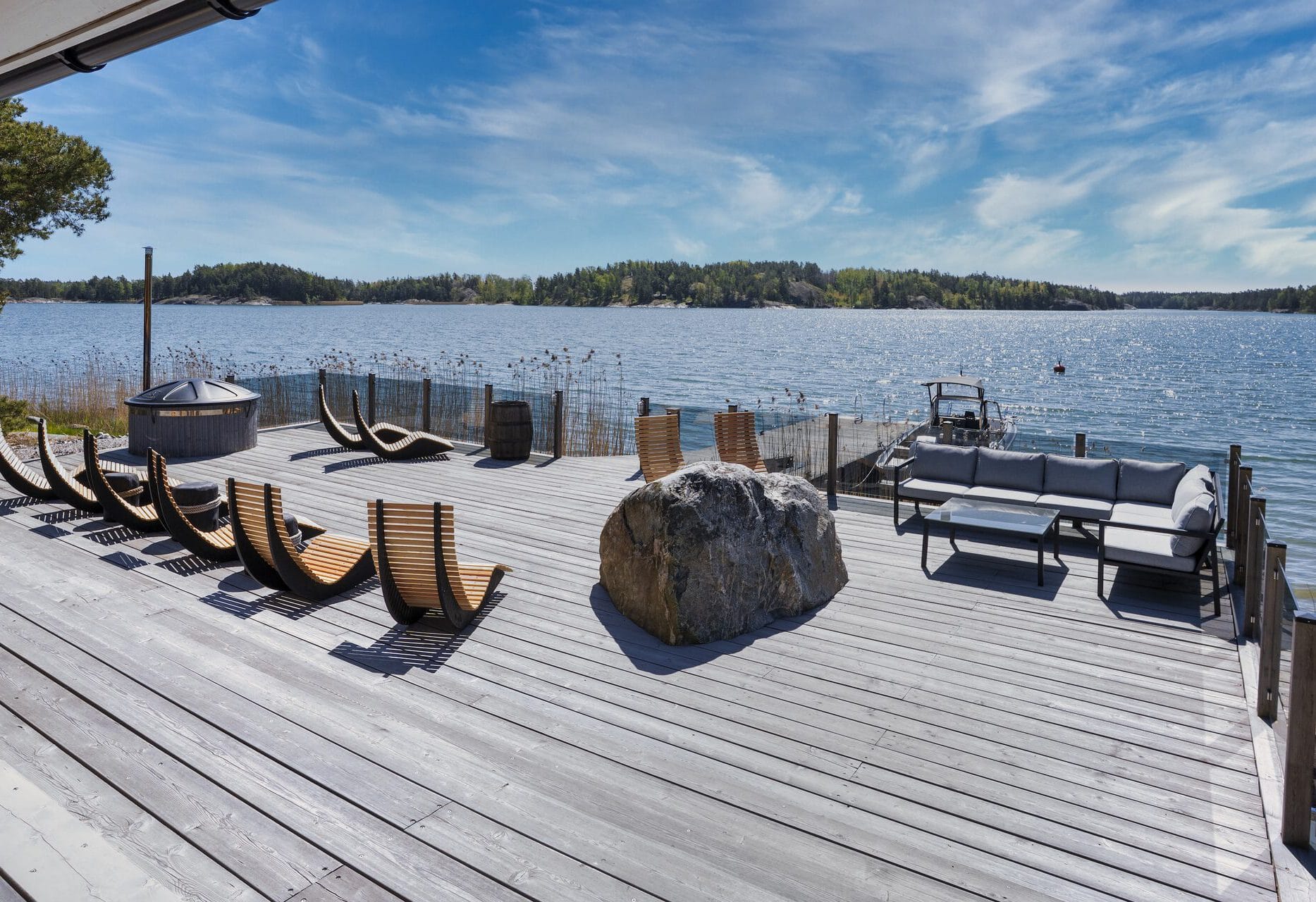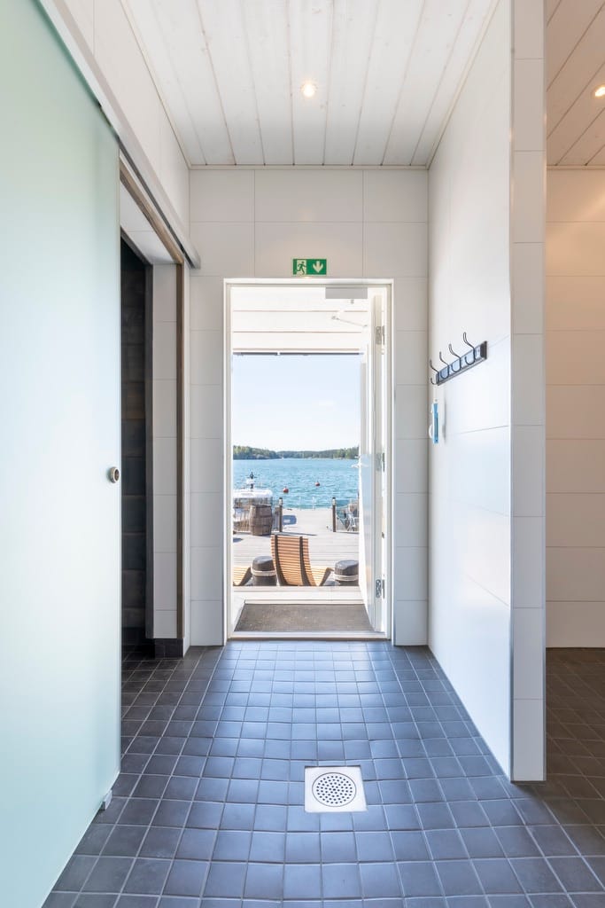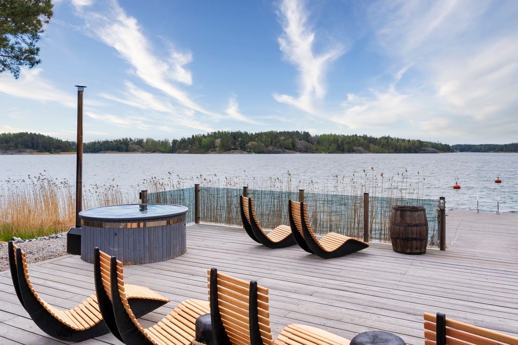 The sauna facilities include the main sauna, washing facilities and a cosy lounge area. On the sauna terrace, you can unwind on comfortable sun loungers while soaking in the breathtaking archipelago landscapes.