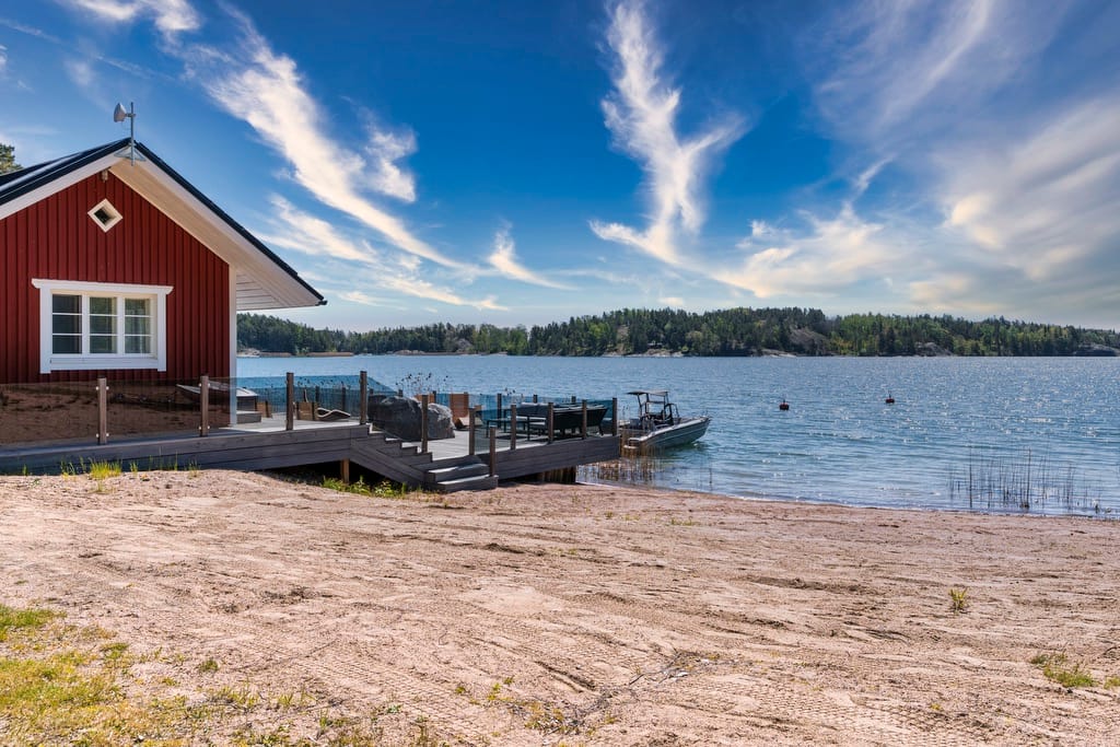 In addition to the beach sauna, the villa grounds also feature an atmospheric traditional smoke sauna, whose gentle heat completes the sauna experience. The estate is further equipped with a traditional tent sauna, offering yet another authentic way to enjoy Finnish sauna culture.