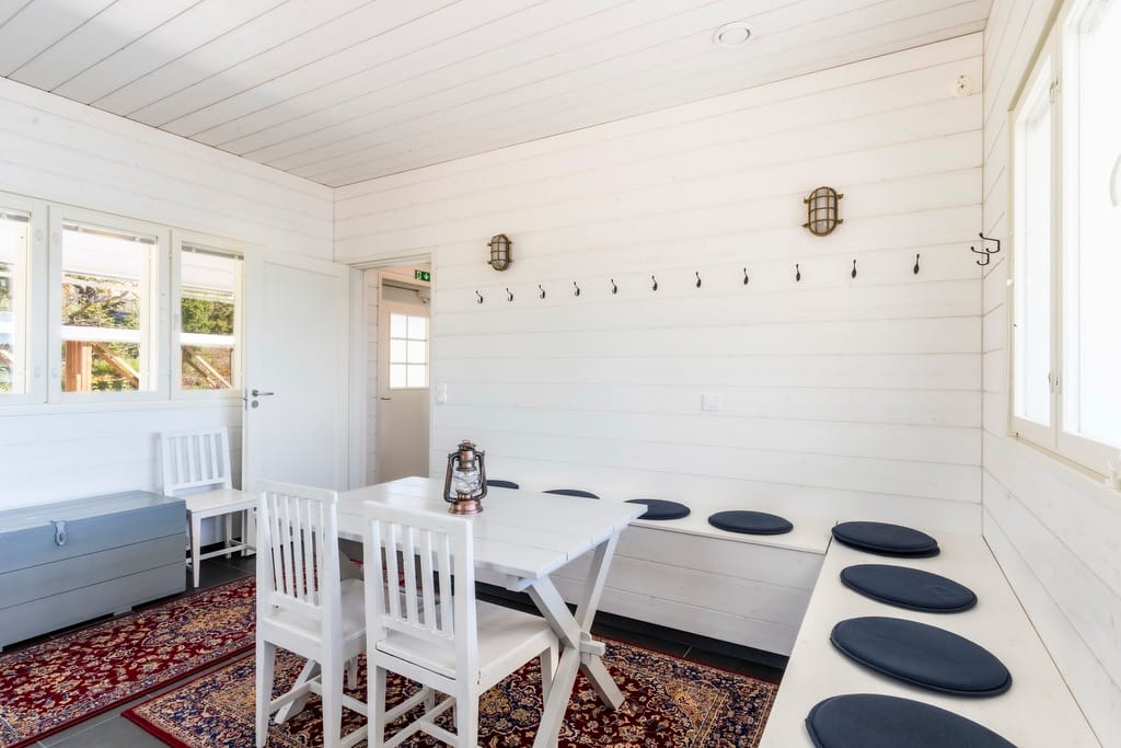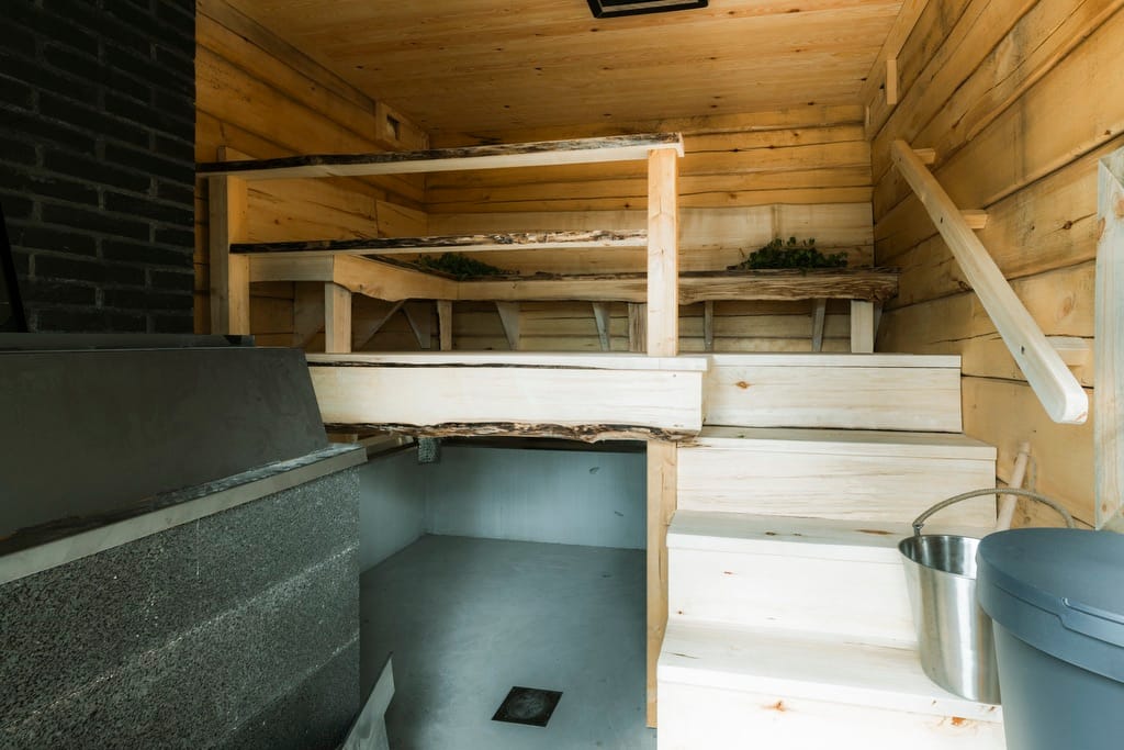 The sauna itself has been fully renovated, and the generous bench space allows larger groups to enjoy the soft, traditional heat together while admiring the sea views. For younger guests, a shallow swimming area is located right next to the sauna building, making the area suitable for the whole group.